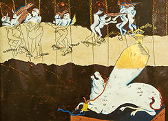 Ragini Upadhaya Grela (b. 1961) is one of Nepal’s internationally best-known and foremost artists, with over 60 solo shows, national and international exhibitions and collections held by museums and private collectors globally (The World Bank acquired five of her works for its global collection of prominent artists in 2015). She has been appointed Chancellor of the Nepal Academy of Fine Arts, a four year post held by highly accomplished and recognized artists. She is a feminist, a political activist and art is her medium to question, stir, shock on issues she cares deeply about – women’s rights, corruption, equity, environmental disaster. Her art is a running social and political commentary on the world around us. Ragini mixes symbols from Hindu and Buddhist mythologies with contemporary themes of climate change, poor governance, etc. Swans and lotuses symbolize education, peace and enlightenment; snakes - desire; elephants - power; and peacocks, birds and clouds depict a woman's dreams and freedom.“Our society believes that boys are more worthy of an education and of freedom but my father always comforted me. He used to say that to achieve anything in life I have to be like an elephant - big, strong and powerful.” And so each morning she paints a trishul (trident) on her brow symbolizing that the strength of a woman is not to be underestimated.